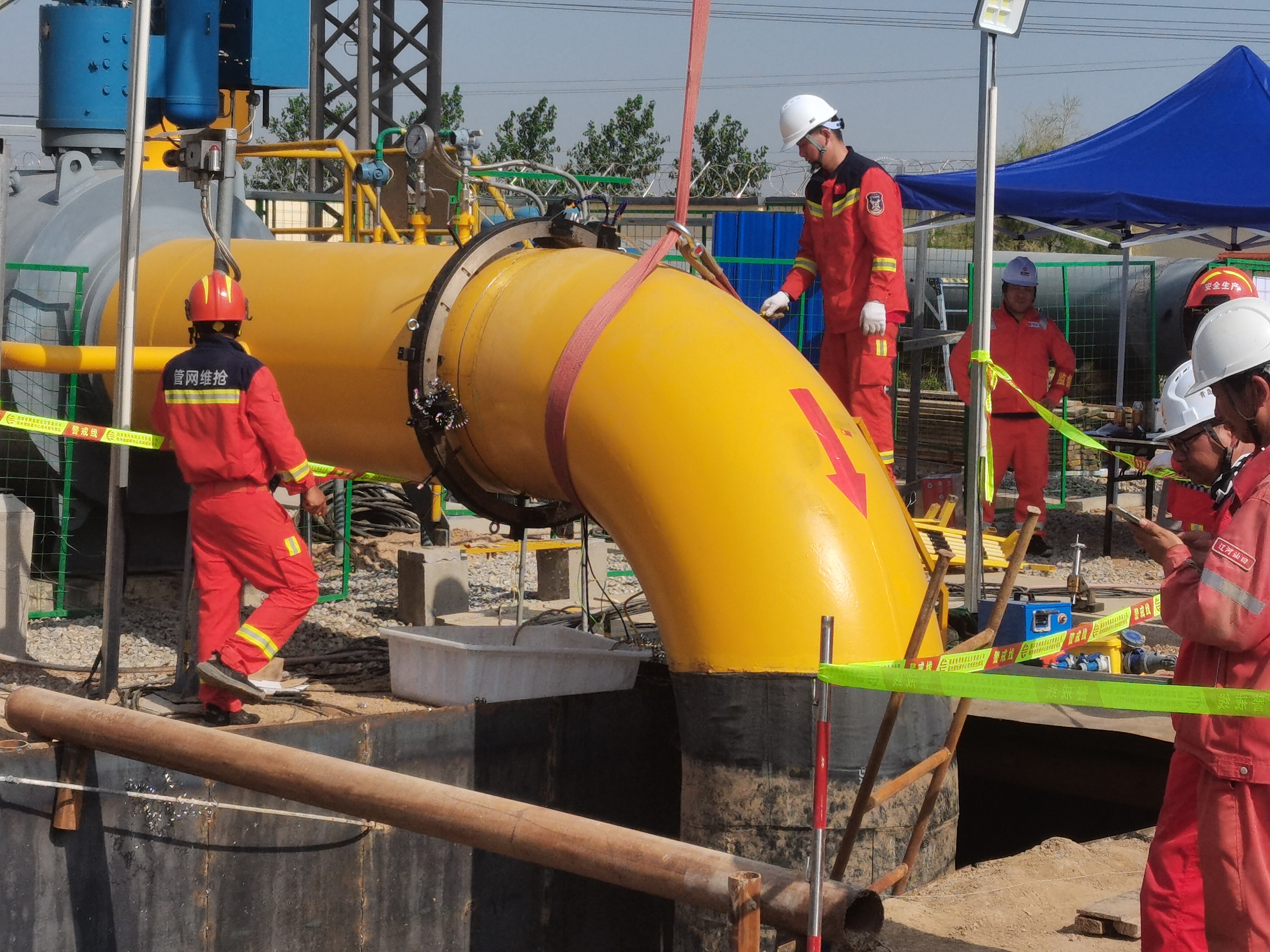 本次改造涉及7處動火點采用設備:,分別與站內管線、放空管線、排污管線等進行連接,本次管網(wǎng)1016mm維搶修作業(yè)易沃克廠家安排技術人員來到現(xiàn)場指導設備分瓣式切割坡口機帶氣切割坡口作業(yè),管網(wǎng)維搶現(xiàn)場作業(yè)人員對于內外坡口效果滿意.