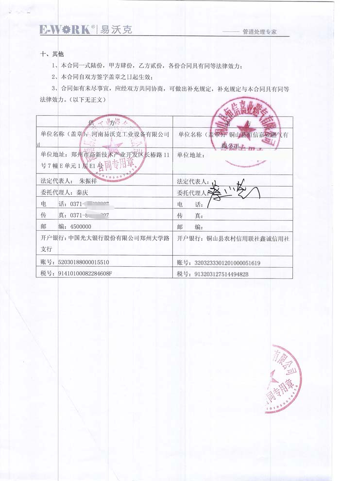 2017年銅山縣恒信嘉業燃氣有限公司合作業績