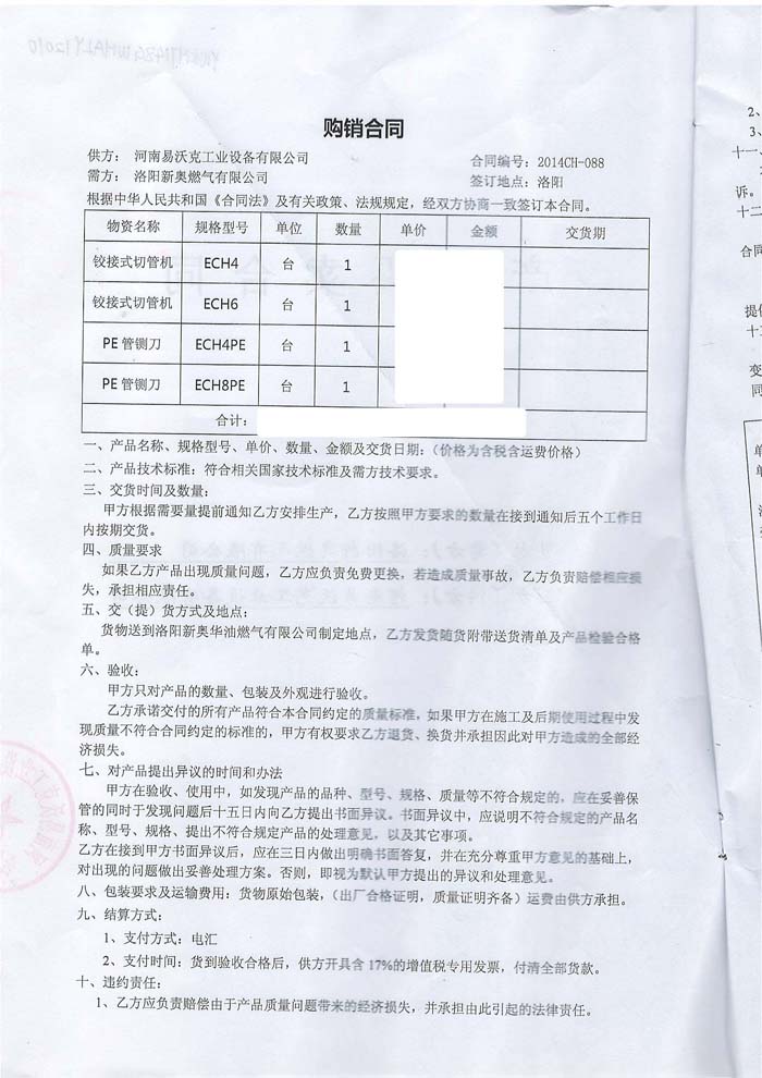 2014年洛陽新奧燃氣有限公司合作業(yè)績
